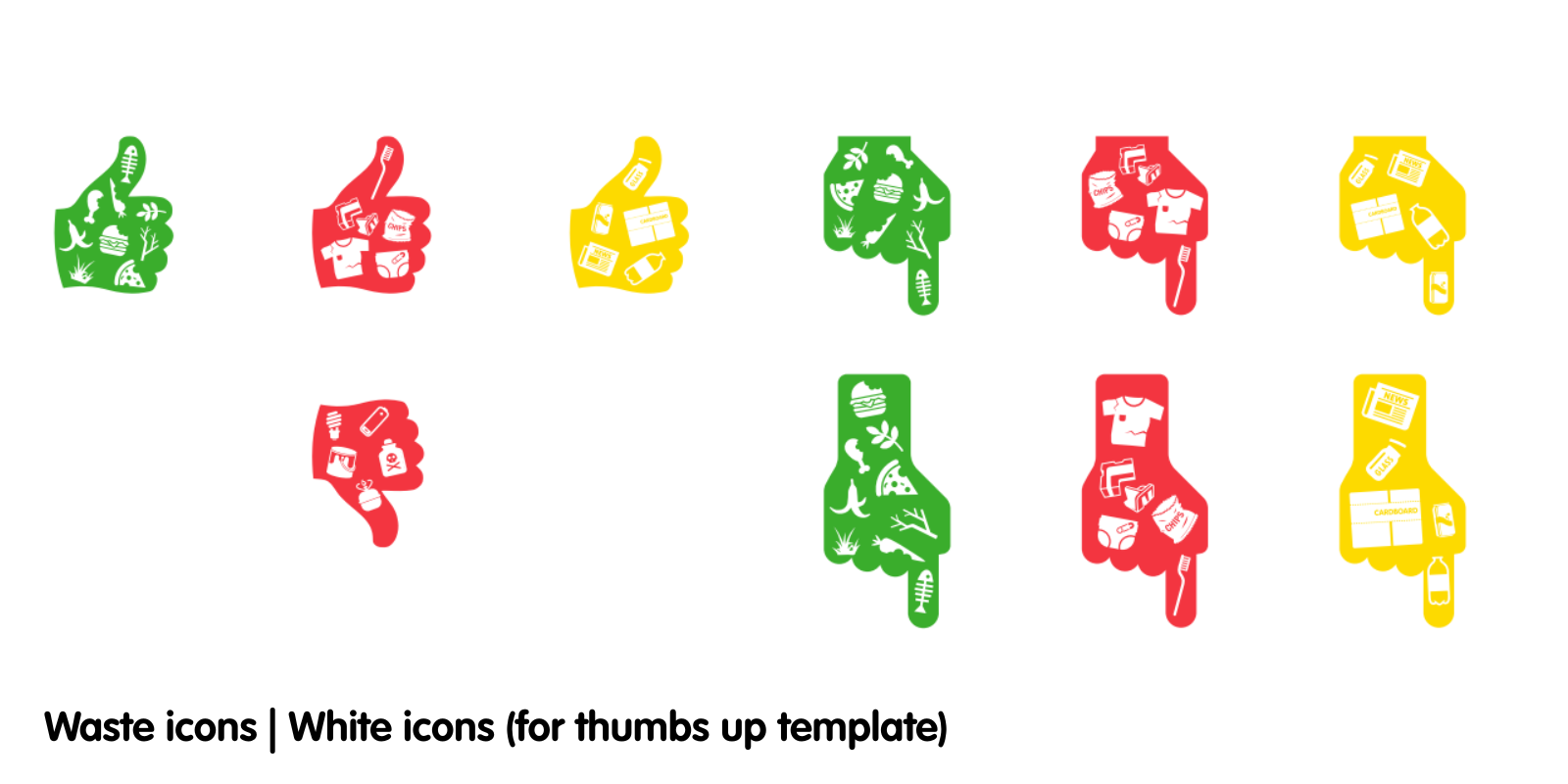 - Download the folder of waste icons. Usually, the coloured icons are used with the monster templates and the white icons are used with the thumbs up templates.